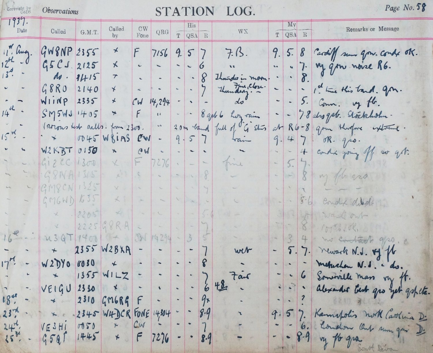 GM5FT Logbook Pages : 1937 Pages 34 to 67, 1 January 1937 – 7 January 1938 Other sections/years and be selected via the buttons below .. 1936 1937 1938 1939 1940 1941-44 1962-64 [Show slideshow] ◄ 1 2